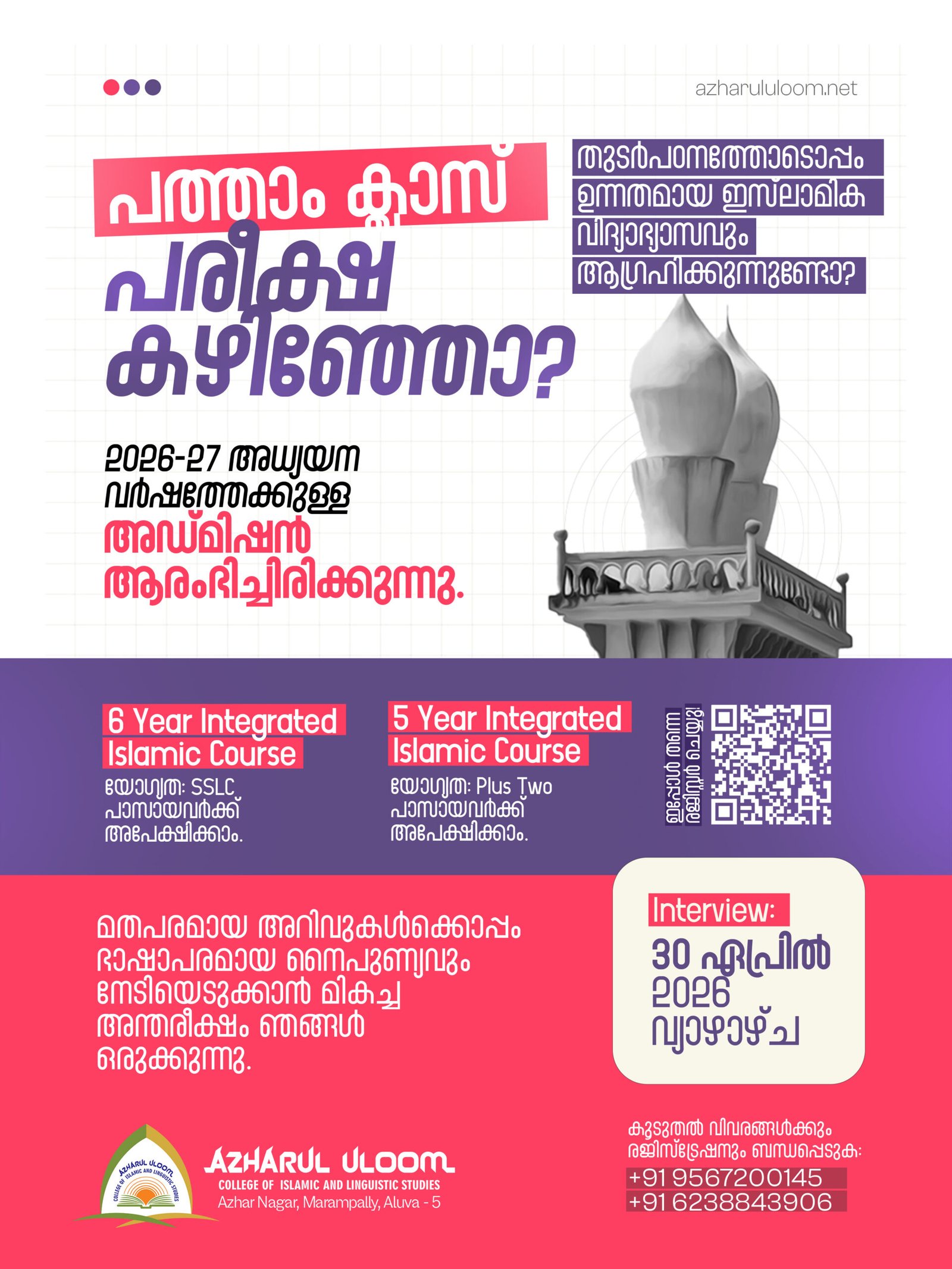തുടർപഠനത്തോടൊപ്പം ഉന്നതമായ ഇസ്ലാമിക വിദ്യാഭ്യാസവും ആഗ്രഹിക്കുന്നുണ്ടോ?